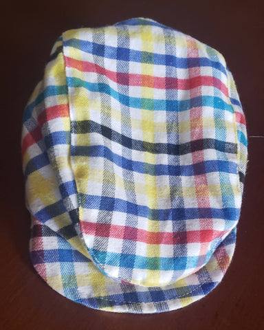 Lightweight Hooligan Hat/Newsboy Cap is available is made of polyester with an elastic piece in the back of hat to fit comfortably. Available in solid royal blue or multi-color plaid.